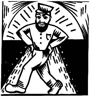 Finally, for the piéce de résistance, goose-stepping his way down the catwalk and into your hearts, here comes the Fuhrer himself, Adolph Hitler! Classic elegance is no kampf whatsoever in that brown single-breasted blazer, and notice the extra-wide lapels to show off the medals you've awarded yourself. The matching pants are studied in their understatement, the entire ensemble seeming to say: "I'm going to hell, and I'm not standing in line." Deutchland uber alles with sophistication to spare!