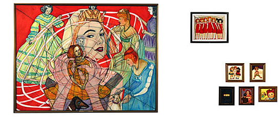 In November 2006, the artist launched a website featuring her latest body of work entitled A Fictional Autobiography. The series of sixty paintings is the accumulation of six year’s work in the studio; the Internet project, designed as an exhibition, took a solid four months at the computer and required the help of web consultant, Letha Wilson. The result is a densely layered, informative website where viewers can choose whether to navigate the exhibition with a simulated walkthrough or via a charted timeline.
