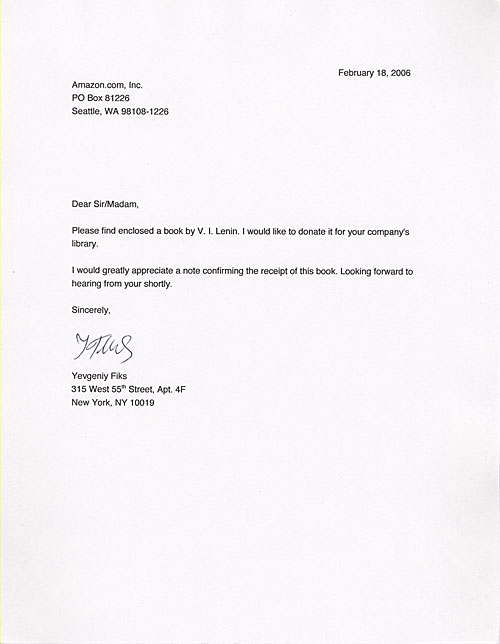 Donation Letter to Amazon.com